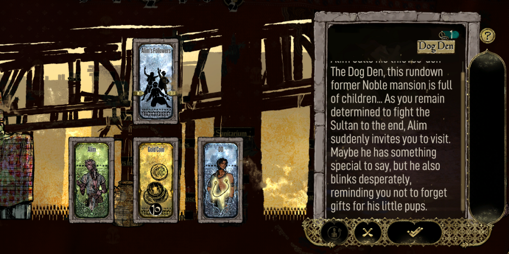 - Dog Den: Send Alim and another follower with 1 feast or 10 coins. In the end, Alim entrusts the kids to Arzu, and the troop, Alim’s Followers, joins the team directly.